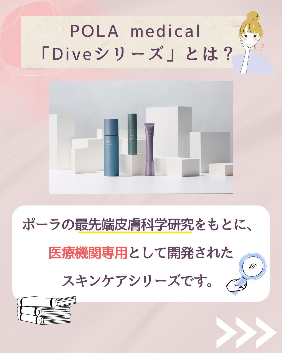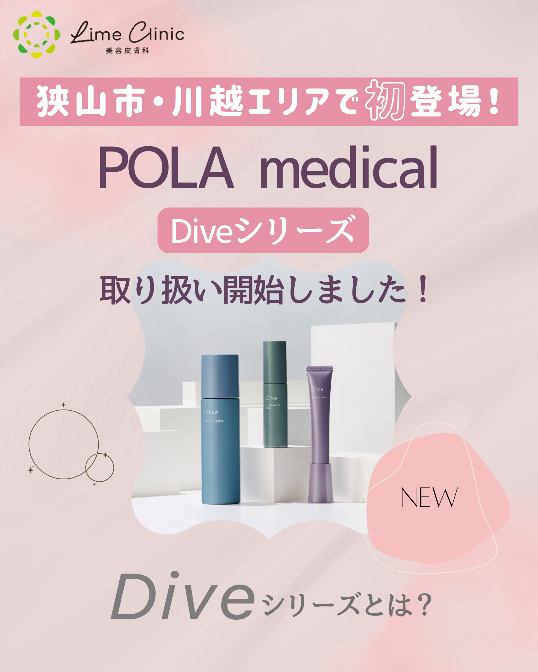 このたび当院では、POLA Medical(ポーラ メディカル)より開発された医療機関専売スキンケア「Dive(ダイブ)シリーズ」の取り扱いを開始しました。