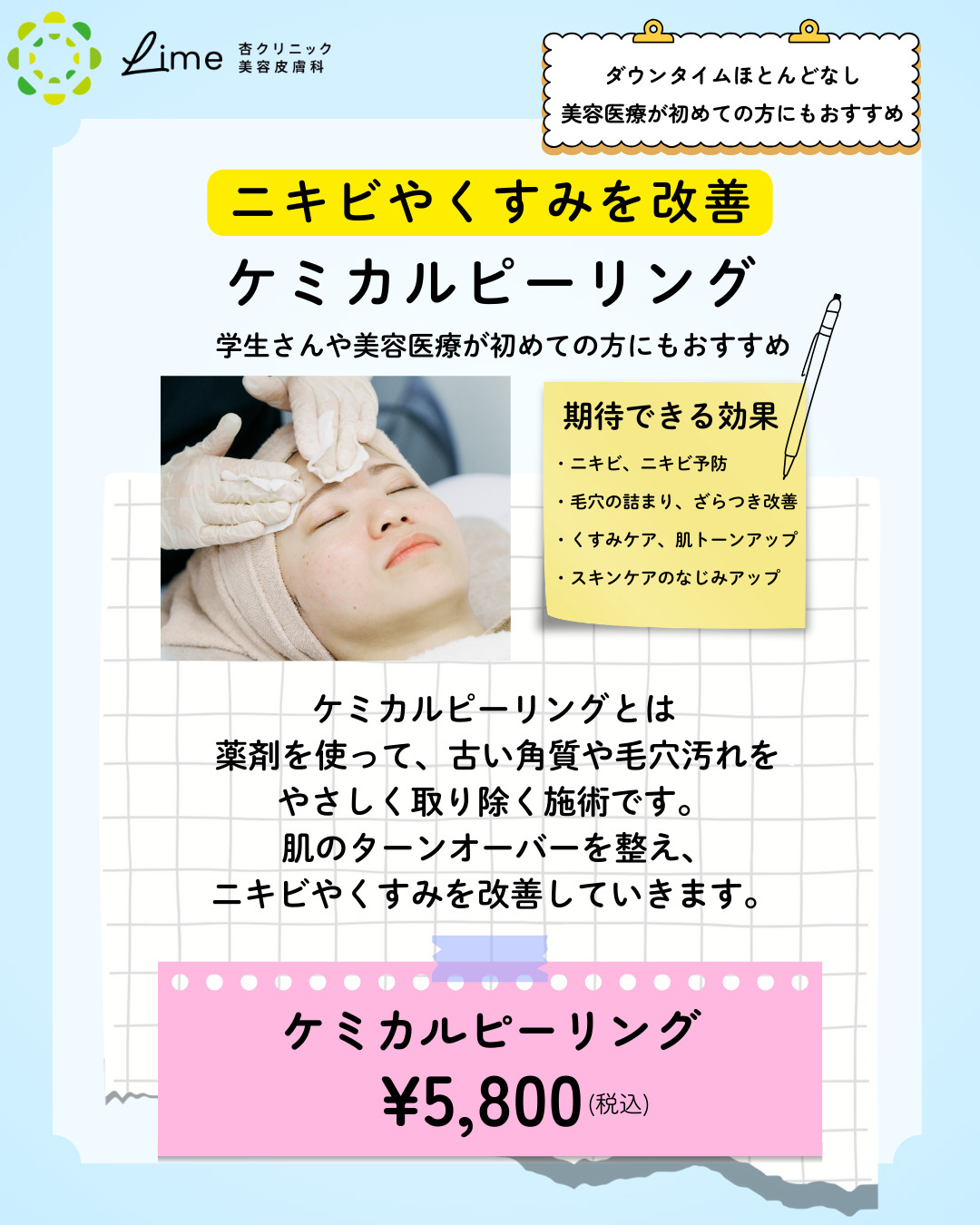 ニキビ予防・軽い肌トラブルには→ケミカルピーリング