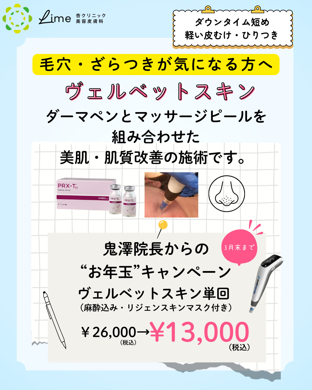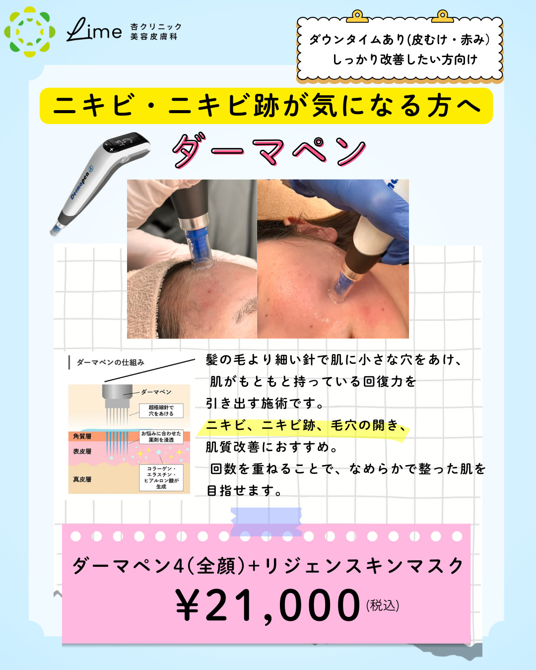 ニキビ跡・肌質改善には→ダーマペン